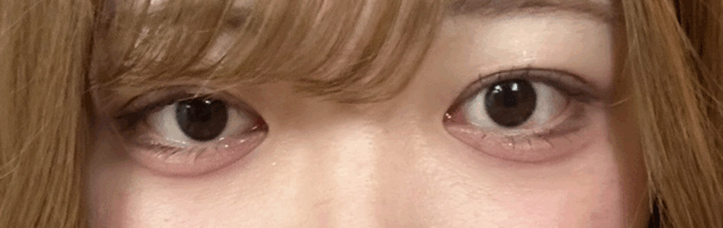 元々黒目が小さい人が、黒目より大きめのカラコンを装着すると目力がUPして、顔全体の印象がぐっと変化します。